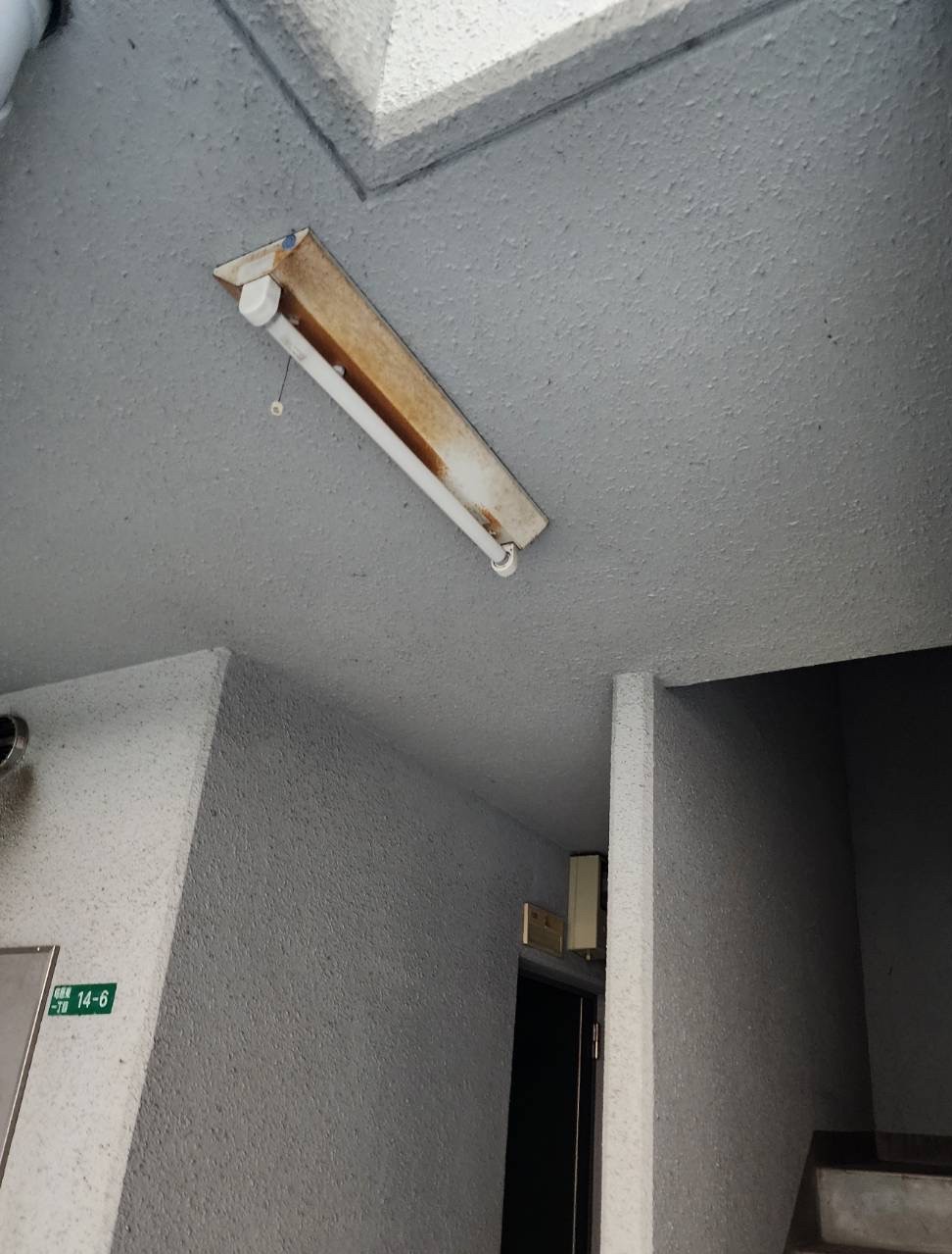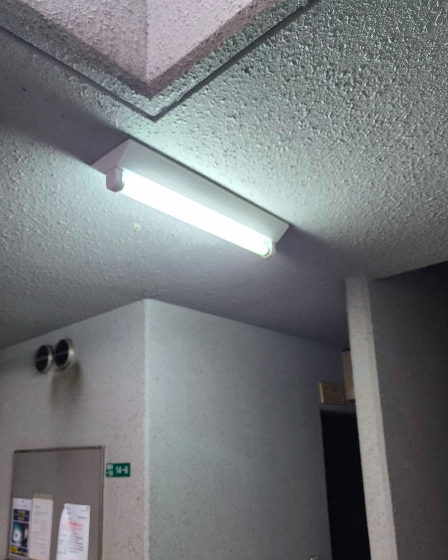 蛍光灯も塗装することで、共用部が明るく安全な印象に♪